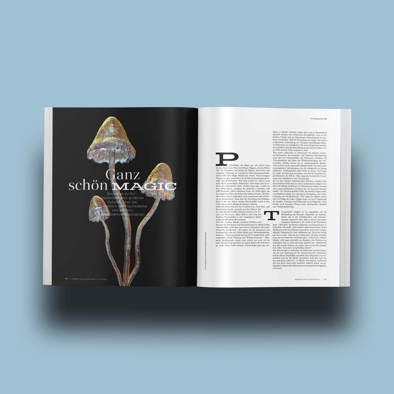 Premium Quarterly ist das Magazin für Health, Wellbeing und Premium Lifestyle. Journalistisch und optisch hochwertig gestaltet mit Porträts, Reportagen und Experten-Interviews rund um die Themen Medizin und Mental Health, Reise und Wellness.