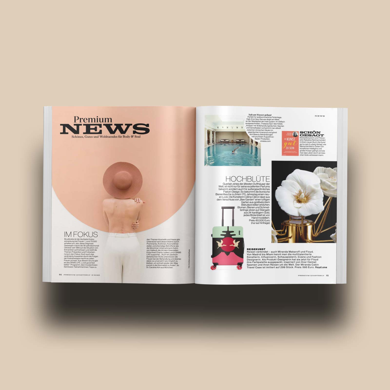 Premium Quarterly ist das Magazin für Health, Wellbeing und Premium Lifestyle. Journalistisch und optisch hochwertig gestaltet mit Porträts, Reportagen und Experten-Interviews rund um die Themen Medizin und Mental Health, Reise und Wellness.